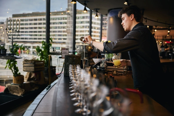 Teaterbaren at Kulturhuset offers a unique opportunity to enjoy excellent cuisine in a stunning setting overlooking Sergels Torg. We serve a varied lunch menu every weekday, focusing on Swedish flavours, vegetarian options, and sustainable ingredients.